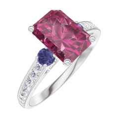 « L'ATELIER » Nº 168068Bague Or blanc 9 carats - Rubis Rectangle 1 carat - Pierres de côté Saphir bleu - Sertissage Diamant 4.4 (8)