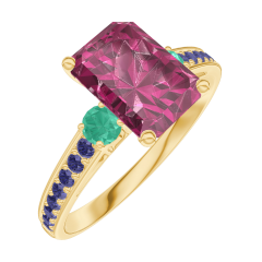 « L'ATELIER » Nº 168094Bague Or jaune 9 carats - Rubis Rectangle 1 carat - Pierres de côté Émeraude - Sertissage Saphir bleu 4.4 (8)