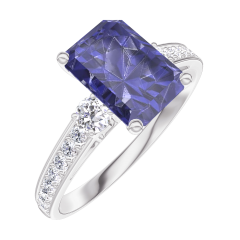 « L'ATELIER » Nº 168628Bague Or blanc 9 carats - Saphir bleu Rectangle 1 carat - Pierres de côté Diamant - Sertissage Diamant 4.6 (5)