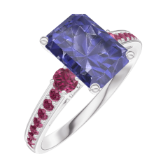 « L'ATELIER » Nº 168651Bague Or blanc 18 carats - Saphir bleu Rectangle 1 carat - Pierres de côté Rubis - Sertissage Rubis 4.4 (8)