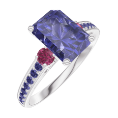 « L'ATELIER » Nº 168656Bague Or blanc 9 carats - Saphir bleu Rectangle 1 carat - Pierres de côté Rubis - Sertissage Saphir bleu 4.4 (8)