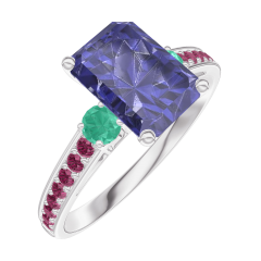 « L'ATELIER » Nº 168691Bague Or blanc 18 carats - Saphir bleu Rectangle 1 carat - Pierres de côté Émeraude - Sertissage Rubis 4.4 (8)