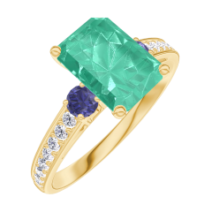 « L'ATELIER » Nº 169266Bague Or jaune 9 carats - Émeraude Rectangle 1 carat - Pierres de côté Saphir bleu - Sertissage Diamant 4.4 (8)