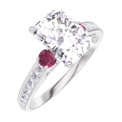 « L'ATELIER » Nº 187447Bague Or blanc 18 carats - Diamant synthétique Rectangle 1 carat - Pierres de côté Rubis - Sertissage Diamant synthétique 4.4 (8)
