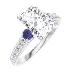 « L'ATELIER » Nº 187467Bague Or blanc 18 carats - Diamant synthétique Rectangle 1 carat - Pierres de côté Saphir bleu - Sertissage Diamant synthétique 4.4 (8)