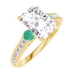 « L'ATELIER » Nº 187486Bague Or jaune 9 carats - Diamant synthétique Rectangle 1 carat - Pierres de côté Émeraude - Sertissage Diamant synthétique 4.4 (8)