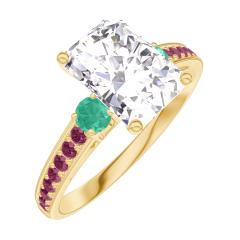 « L'ATELIER » Nº 187490Bague Or jaune 9 carats - Diamant synthétique Rectangle 1 carat - Pierres de côté Émeraude - Sertissage Rubis 4.4 (8)