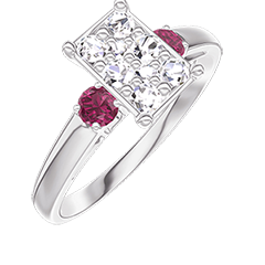 « L'ATELIER » Nº 211044Bague Or blanc 9 carats - Cluster de diamants naturels Rectangle équivalent 1 - Pierres de côté Rubis 4.4 (8)