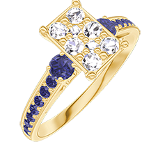 « L'ATELIER » Nº 211074Bague Or jaune 9 carats - Cluster de diamants naturels Rectangle équivalent 1 - Pierres de côté Saphir bleu - Sertissage Saphir bleu 4.4 (8)