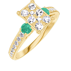« L'ATELIER » Nº 211085Bague Or jaune 18 carats - Cluster de diamants naturels Rectangle équivalent 1 - Pierres de côté Émeraude - Sertissage Diamant 4.4 (8)