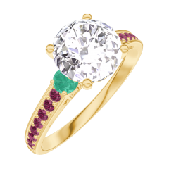 « L'ATELIER » Nº167289Bague Or jaune 18 carats - Diamant Rond 1 carat - Pierres de côté Émeraude - Sertissage Rubis 4.7 (11)