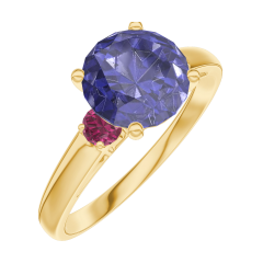 « L'ATELIER » Nº 168441Bague Or jaune 18 carats - Saphir bleu Rond 1 carat - Pierres de côté Rubis 4.8 (14)