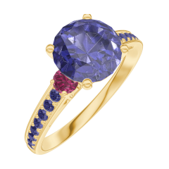 « L'ATELIER » Nº 168453Bague Or jaune 18 carats - Saphir bleu Rond 1 carat - Pierres de côté Rubis - Sertissage Saphir bleu 4.8 (14)