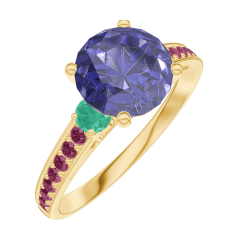 « L'ATELIER » Nº 168490Bague Or jaune 9 carats - Saphir bleu Rond 1 carat - Pierres de côté Émeraude - Sertissage Rubis 4.7 (15)