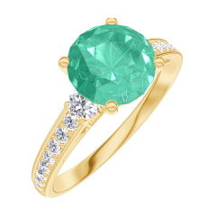 « L'ATELIER » Nº 169026Bague Or jaune 9 carats - Émeraude Rond 1 carat - Pierres de côté Diamant - Sertissage Diamant 4.8 (14)