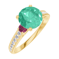 « L'ATELIER » Nº 169046Bague Or jaune 9 carats - Émeraude Rond 1 carat - Pierres de côté Rubis - Sertissage Diamant 4.8 (14)