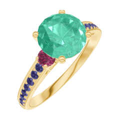 « L'ATELIER » Nº 169053Bague Or jaune 18 carats - Émeraude Rond 1 carat - Pierres de côté Rubis - Sertissage Saphir bleu 4.8 (14)