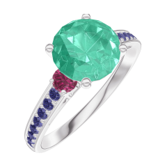 « L'ATELIER » Nº 169055Bague Or blanc 18 carats - Émeraude Rond 1 carat - Pierres de côté Rubis - Sertissage Saphir bleu 4.7 (15)