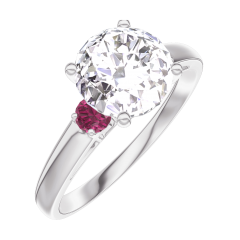« L'ATELIER » Nº 187244Bague Or blanc 9 carats - Diamant synthétique Rond 1 carat - Pierres de côté Rubis 4.7 (15)