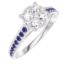 « L'ATELIER » Nº 210816Bague Or blanc 9 carats - Cluster de diamants naturels Rond équivalent 1 - Sertissage Saphir bleu 4.9 (14)