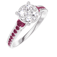 « L'ATELIER » Nº 210851Bague Or blanc 18 carats - Cluster de diamants naturels Rond équivalent 1 - Pierres de côté Rubis - Sertissage Rubis 4.7 (15)