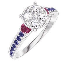 « L'ATELIER » Nº 210855Bague Or blanc 18 carats - Cluster de diamants naturels Rond équivalent 1 - Pierres de côté Rubis - Sertissage Saphir bleu 4.7 (15)