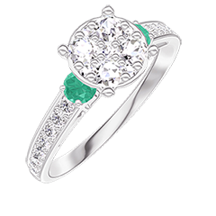 « L'ATELIER » Nº210887Bague Or blanc 18 carats - Cluster de diamants naturels Rond équivalent 1 - Pierres de côté Émeraude - Sertissage Diamant 4.8 (14)