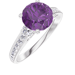 « L'ATELIER » Nº 216468Bague Or blanc 9 carats - Améthyste Rond 1 carat - Pierres de côté Diamant - Sertissage Diamant 4.8 (14)