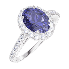 « L'ATELIER » Nº 1006791Bague Or blanc 9 carats - Saphir synthétique Ovale 0.5 carat - Halo Diamant synthétique - Sertissage Diamant synthétique 4.5 (12)