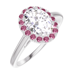 « L'ATELIER » Nº170164Bague Or blanc 9 carats - Diamant Ovale 0.5 carat - Halo Rubis 4.5 (12)