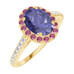 « L'ATELIER » Nº 170741Bague Or jaune 18 carats - Saphir bleu Ovale 0.5 carat - Halo Rubis - Sertissage Diamant 4.8 (12)