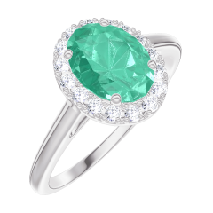 « L'ATELIER » Nº 171012Bague Or blanc 9 carats - Émeraude Ovale 0.5 carat - Halo Diamant 4.5 (12)
