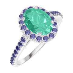 « L'ATELIER » Nº 171055Bague Or blanc 18 carats - Émeraude Ovale 0.5 carat - Halo Saphir bleu - Sertissage Saphir bleu 4.5 (12)