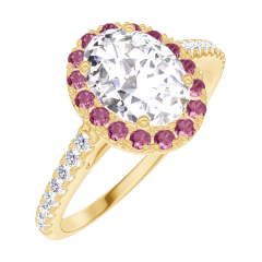 « L'ATELIER » Nº190166Bague Or jaune 9 carats - Diamant synthétique Ovale 0.5 carat - Halo Rubis - Sertissage Diamant synthétique 4.5 (12)