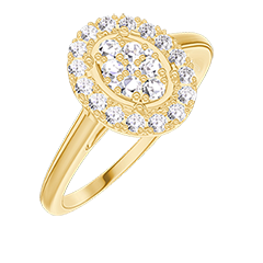 « L'ATELIER » Nº 211546Bague Or jaune 9 carats - Cluster de diamants naturels Ovale équivalent 0.5 - Halo Diamant 4.5 (12)