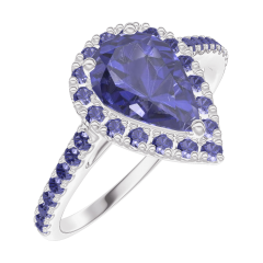 « L'ATELIER » Nº 170816Bague Or blanc 9 carats - Saphir bleu Poire 0.5 carat - Halo Saphir bleu - Sertissage Saphir bleu 4.9 (14)