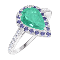 « L'ATELIER » Nº 171096Bague Or blanc 9 carats - Émeraude Poire 0.5 carat - Halo Saphir bleu - Sertissage Diamant 4.8 (13)