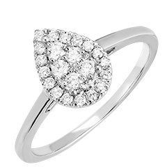 « L'ATELIER » Nº 211595Bague Or blanc 18 carats - Cluster de diamants naturels Poire équivalent 0.5 - Halo Diamant 4.8 (13)