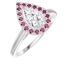 « L'ATELIER » Nº211612Bague Or blanc 9 carats - Cluster de diamants naturels Poire équivalent 0.5 - Halo Rubis 4.8 (13)