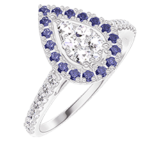 « L'ATELIER » Nº211631Bague Or blanc 18 carats - Cluster de diamants naturels Poire équivalent 0.5 - Halo Saphir bleu - Sertissage Diamant 4.8 (13)