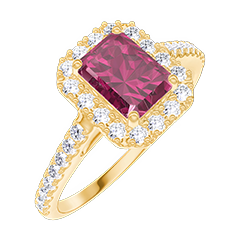 « L'ATELIER » Nº 1006452Bague Or jaune 18 carats - Rubis synthétique Rectangle 0.5 carat - Halo Diamant synthétique - Sertissage Diamant synthétique 4.8 (49)
