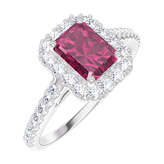 « L'ATELIER » Nº 1006455Bague Or blanc 9 carats - Rubis synthétique Rectangle 0.5 carat - Halo Diamant synthétique - Sertissage Diamant synthétique 4.7 (46)