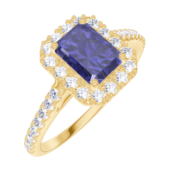 « L'ATELIER » Nº 1006740Bague Or jaune 18 carats - Saphir synthétique Rectangle 0.5 carat - Halo Diamant synthétique - Sertissage Diamant synthétique 4.7 (46)
