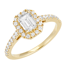 « L'ATELIER » Nº 170102Bague Or jaune 9 carats - Diamant Rectangle 0.5 carat - Halo Diamant - Sertissage Diamant 4.9 (47)