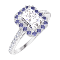« L'ATELIER » Nº 170136Bague Or blanc 9 carats - Diamant Rectangle 0.5 carat - Halo Saphir bleu - Sertissage Diamant 4.8 (49)