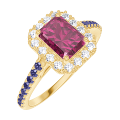 « L'ATELIER » Nº 170398Bague Or jaune 9 carats - Rubis Rectangle 0.5 carat - Halo Diamant - Sertissage Saphir bleu 4.8 (49)