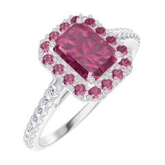 « L'ATELIER » Nº 170408Bague Or blanc 9 carats - Rubis Rectangle 0.5 carat - Halo Rubis - Sertissage Diamant 4.7 (44)