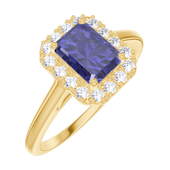 « L'ATELIER » Nº 170674Bague Or jaune 9 carats - Saphir bleu Rectangle 0.5 carat - Halo Diamant 4.7 (46)