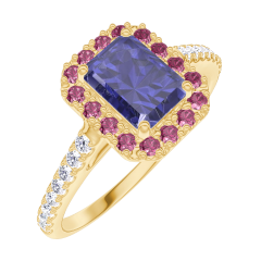 « L'ATELIER » Nº 170693Bague Or jaune 18 carats - Saphir bleu Rectangle 0.5 carat - Halo Rubis - Sertissage Diamant 4.9 (46)