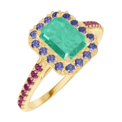 « L'ATELIER » Nº171001Bague Or jaune 18 carats - Émeraude Rectangle 0.5 carat - Halo Saphir bleu - Sertissage Rubis 4.8 (41)
